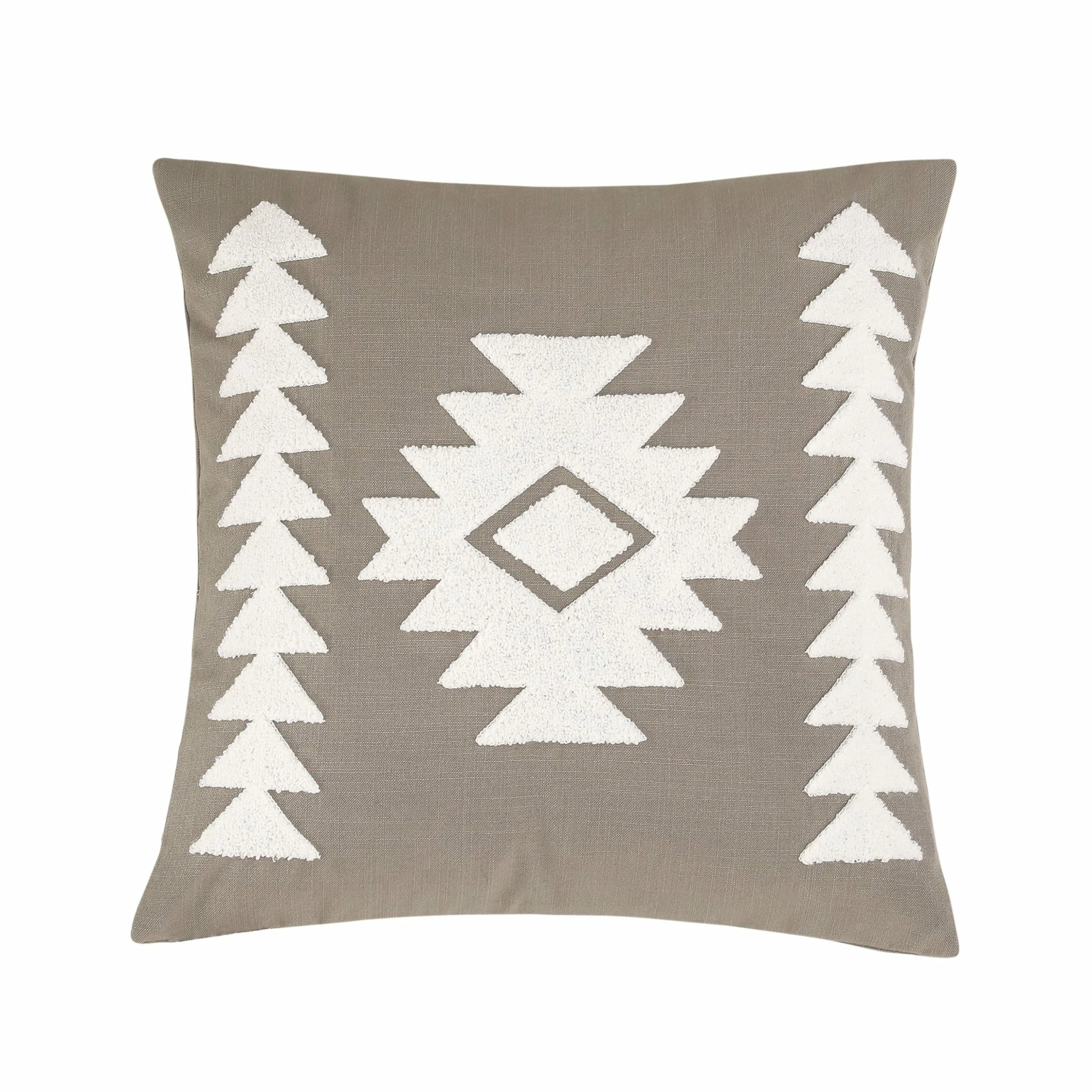 The Aztec design with arrow details in soft cream crewel embroidery and neutral ground of taupe pair well with the Applique Arrow Design pillow or the Trent pillow. Color:Β Taupe, Cream Measurement:Β 18″ x 18″ Care:Β Spot Clean Material:Β Shell:100% Polyester, Filling: 100% Waterfowl Feathers