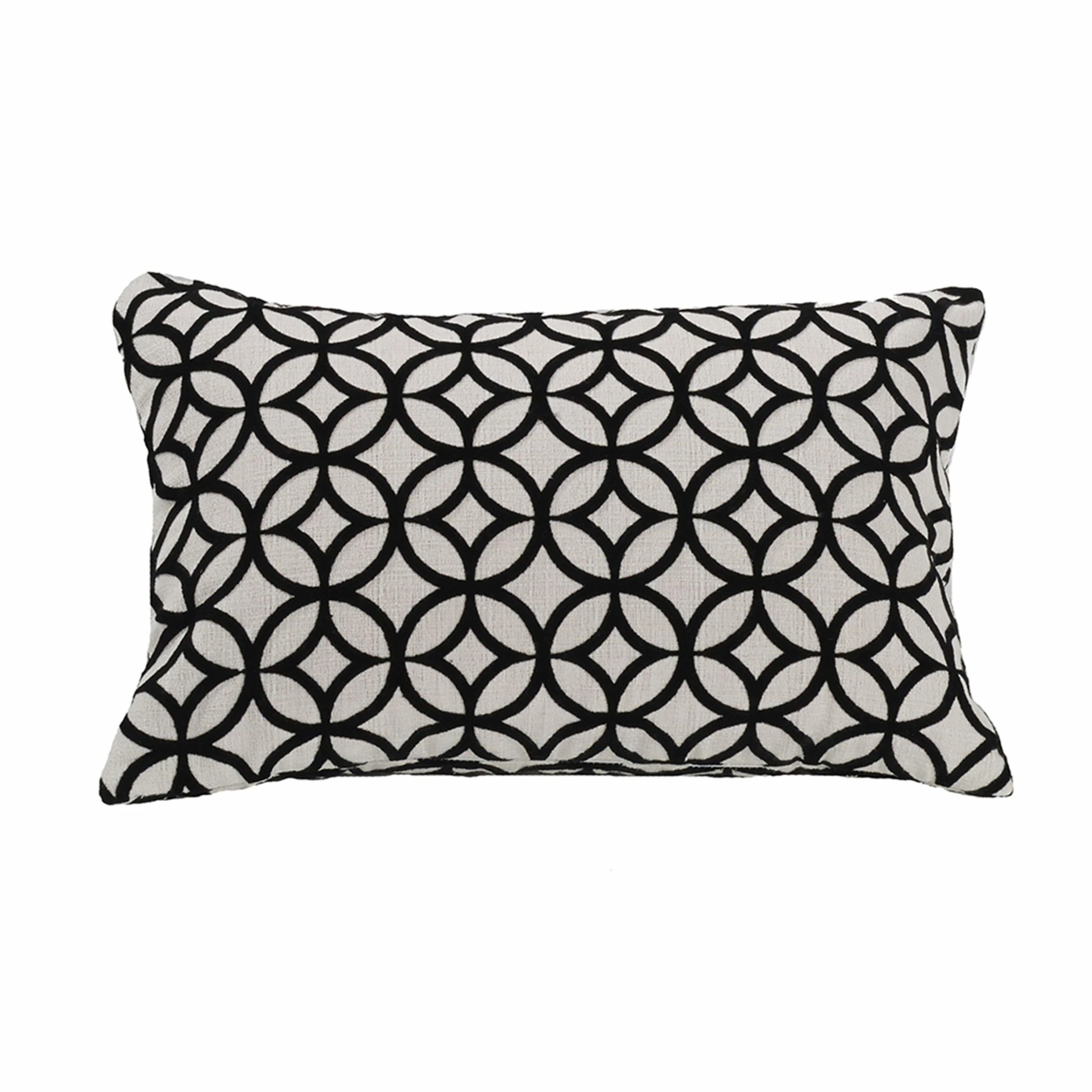Designed for the Augusta Toile collection, this lovely off-white accent pillow features black diamonds and circles. Additional pieces sold separately.