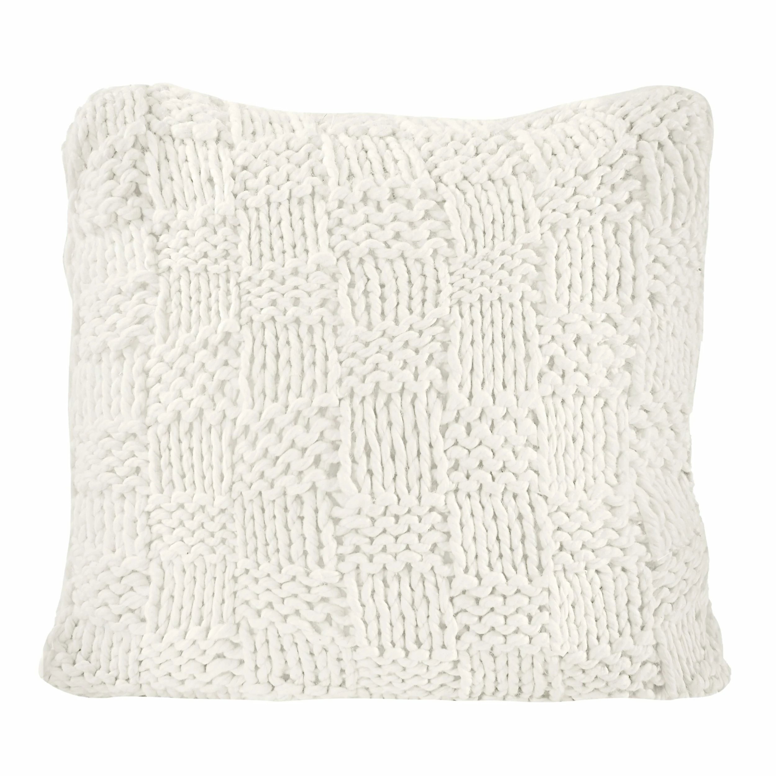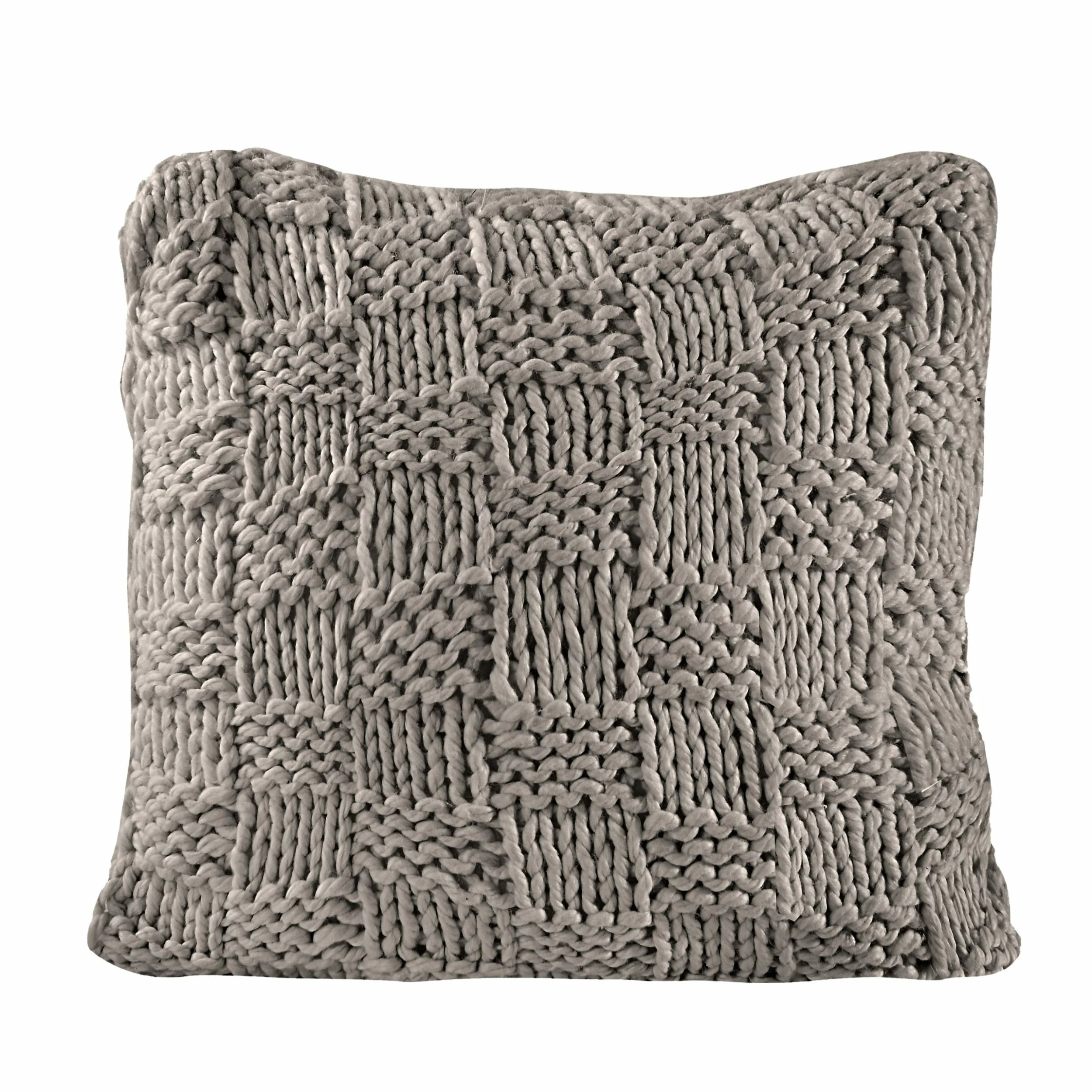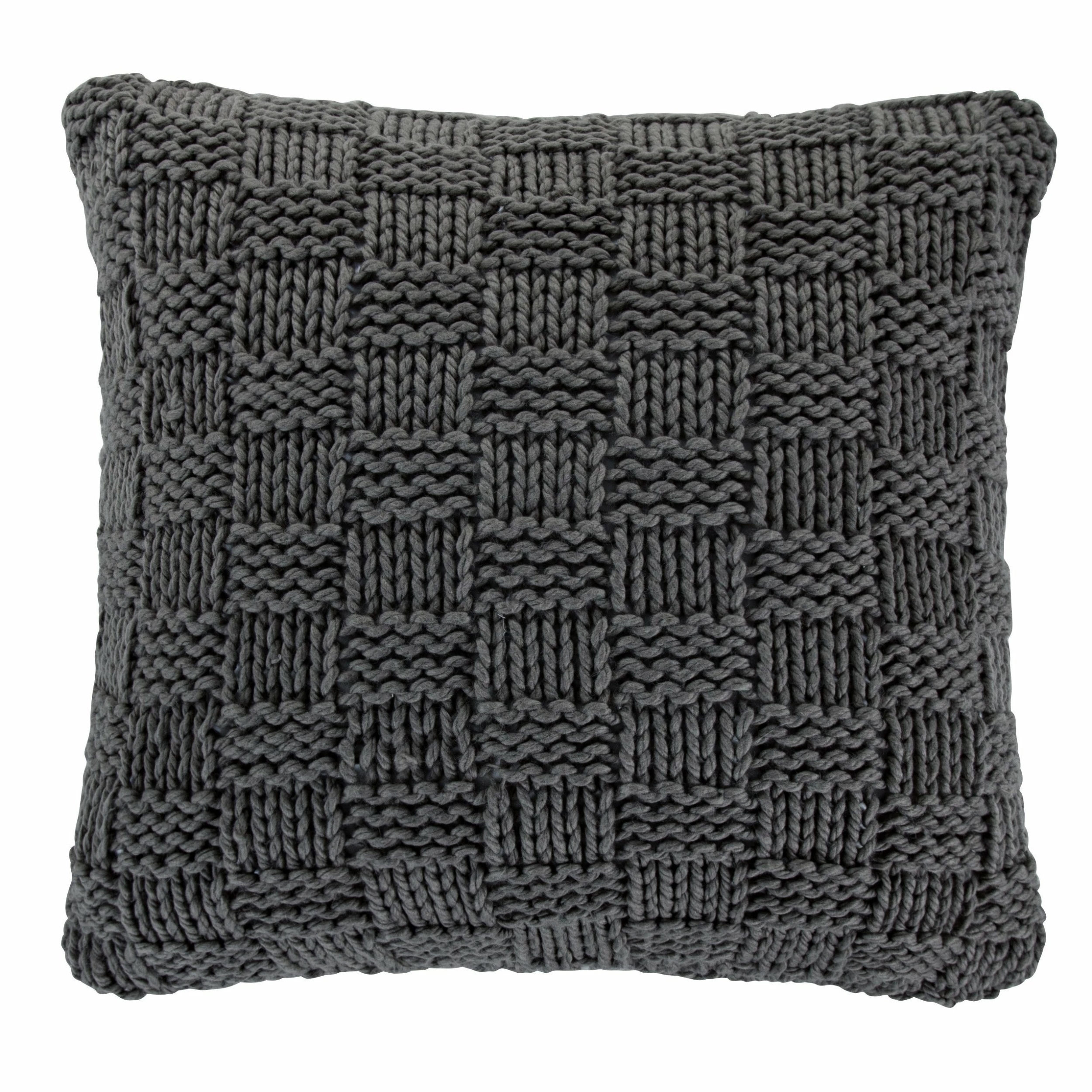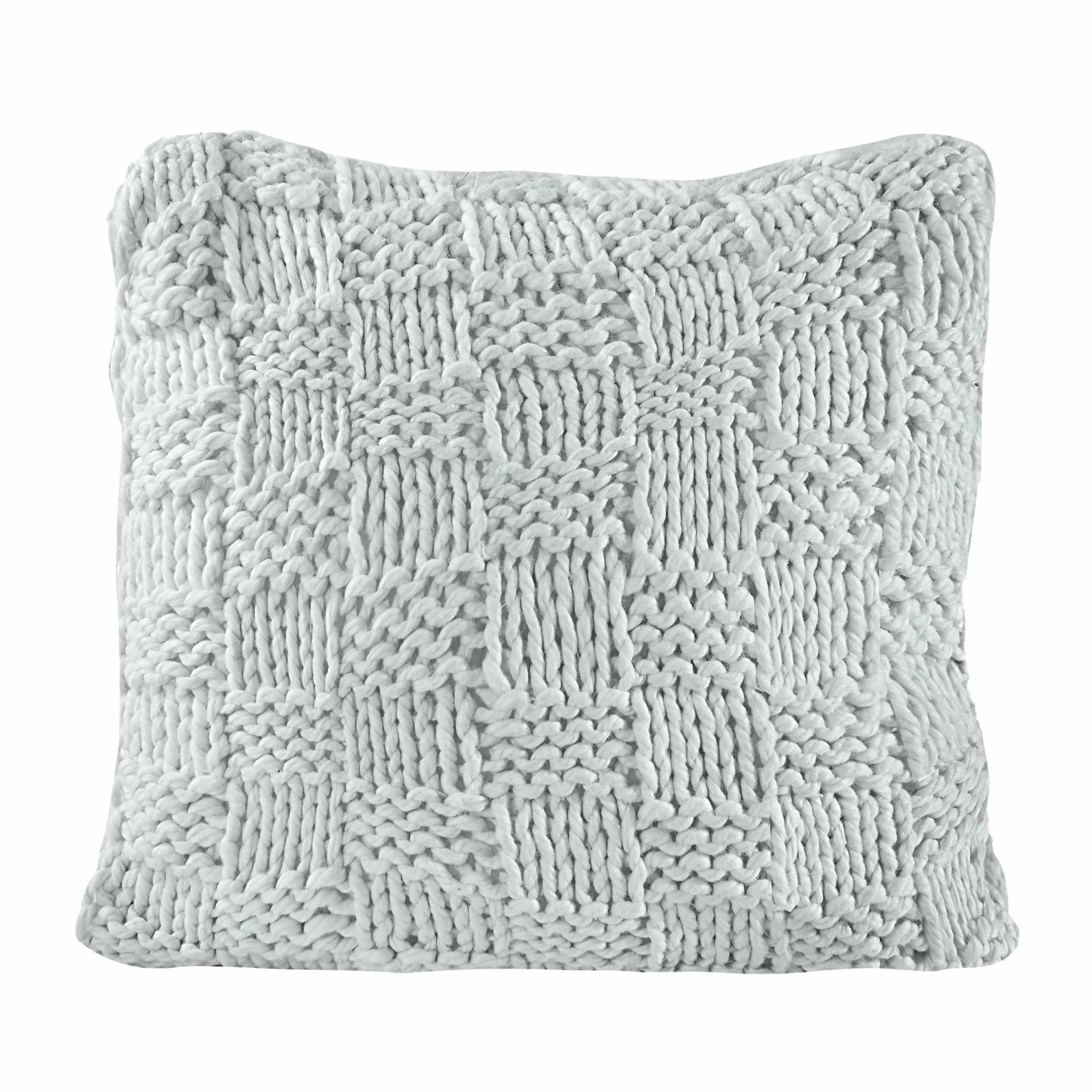 Add a hand-knitted, chess-knit euro to your bedroom for a fun pop of texture and luxurious feel. The knit can be used both in modern, contemporary homes with its chic, bold check pattern, or in a rustic lodge setting with its classic tone and rustic, shabby look. The neutral colors palette makes them a versatile, updated addition to your bedding.