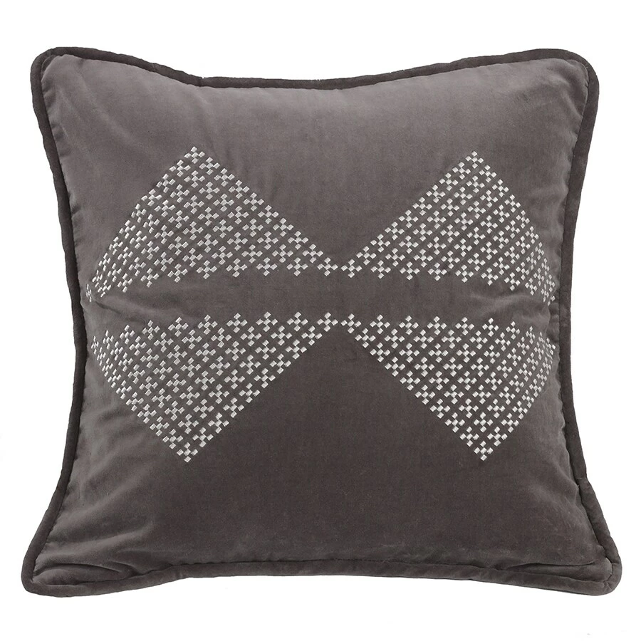 Complement your contemporary decor with the stunning design and neutral hues of this embroidered throw pillow. White, diamond-shaped accents form an intricate geometric pattern against the soft and comfortable grey material, ensuring all-season appeal.