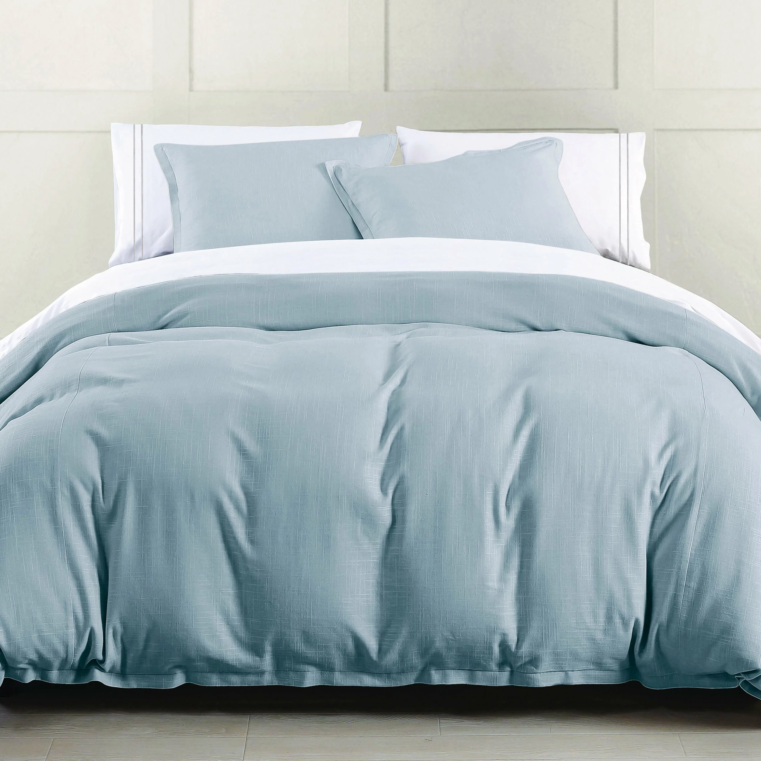 Soft, airy, and simply sophisticated. Our Hera Flange Linen Comforter Set comes in an array of soft, muted colors, accented by a flange border for an elegant finish. With a versatile palette, this bedding set easily blends in with a variety of casual and contemporary styles. Our signature linen-blend is easy to care for and mimics the look and textural appeal of linen—without the creases. Layer with our Stonewashed Cotton Velvet Quilt for a casual yet luxurious look.