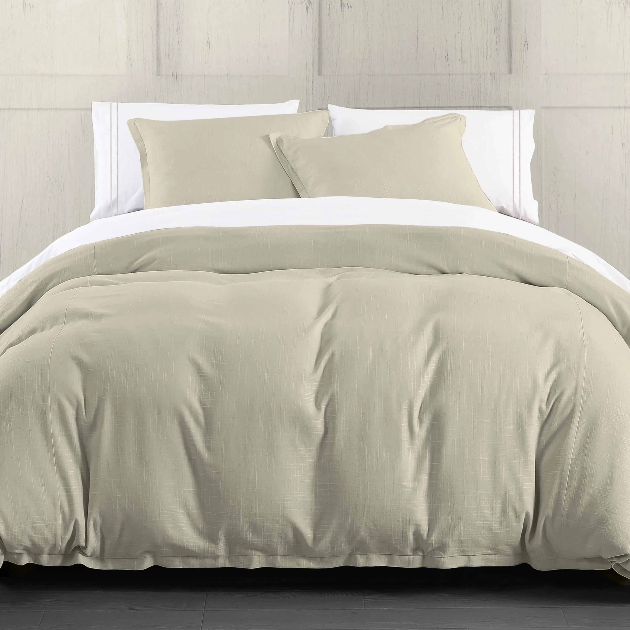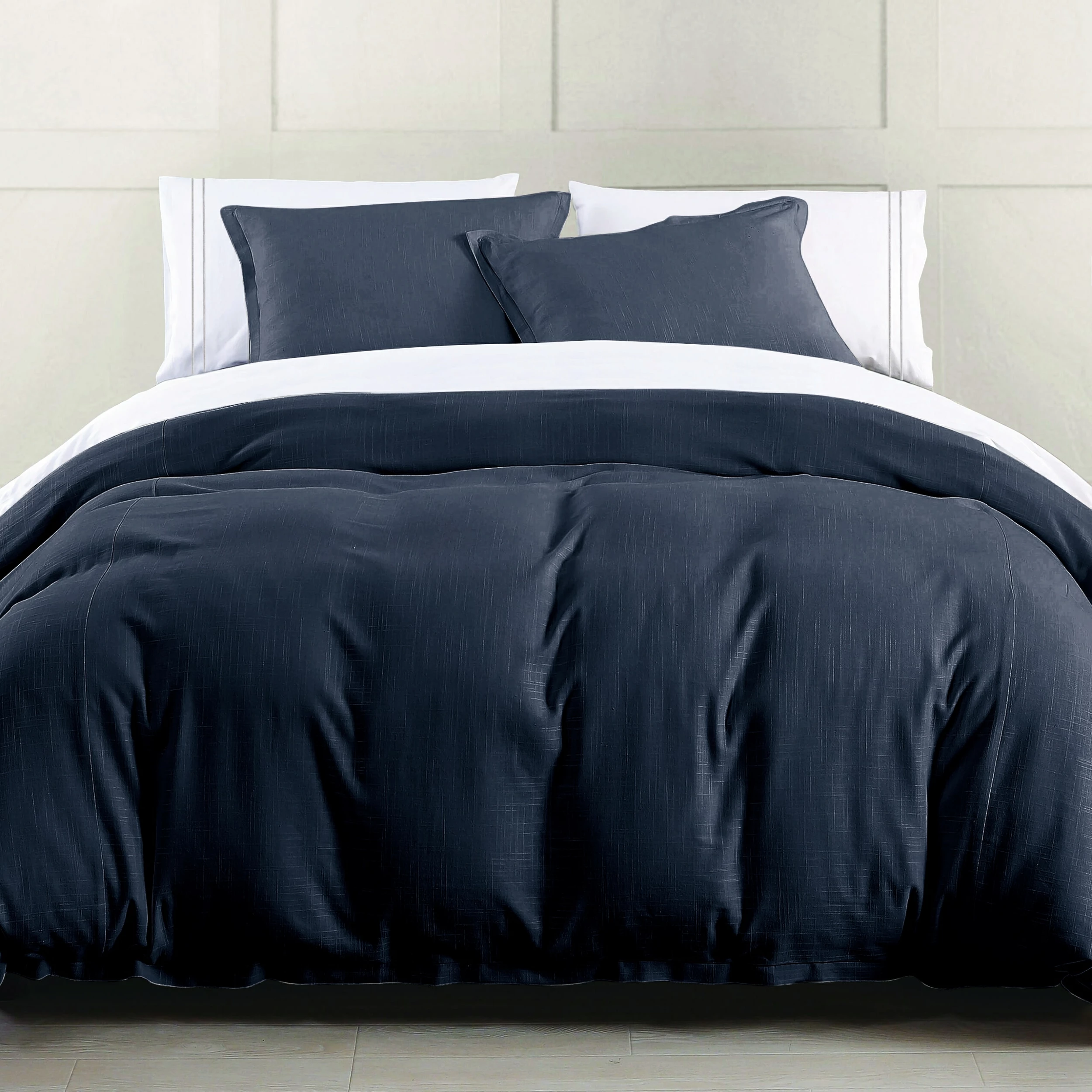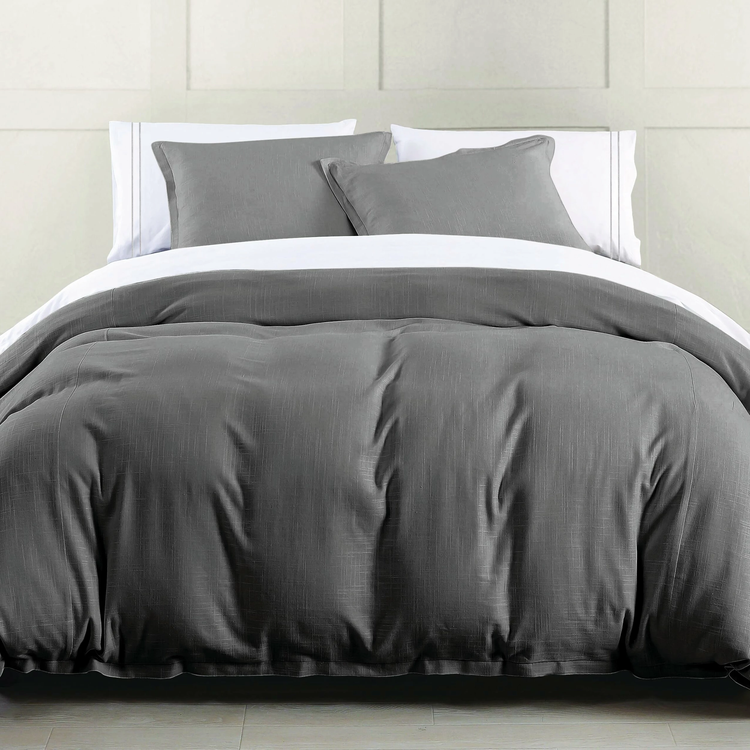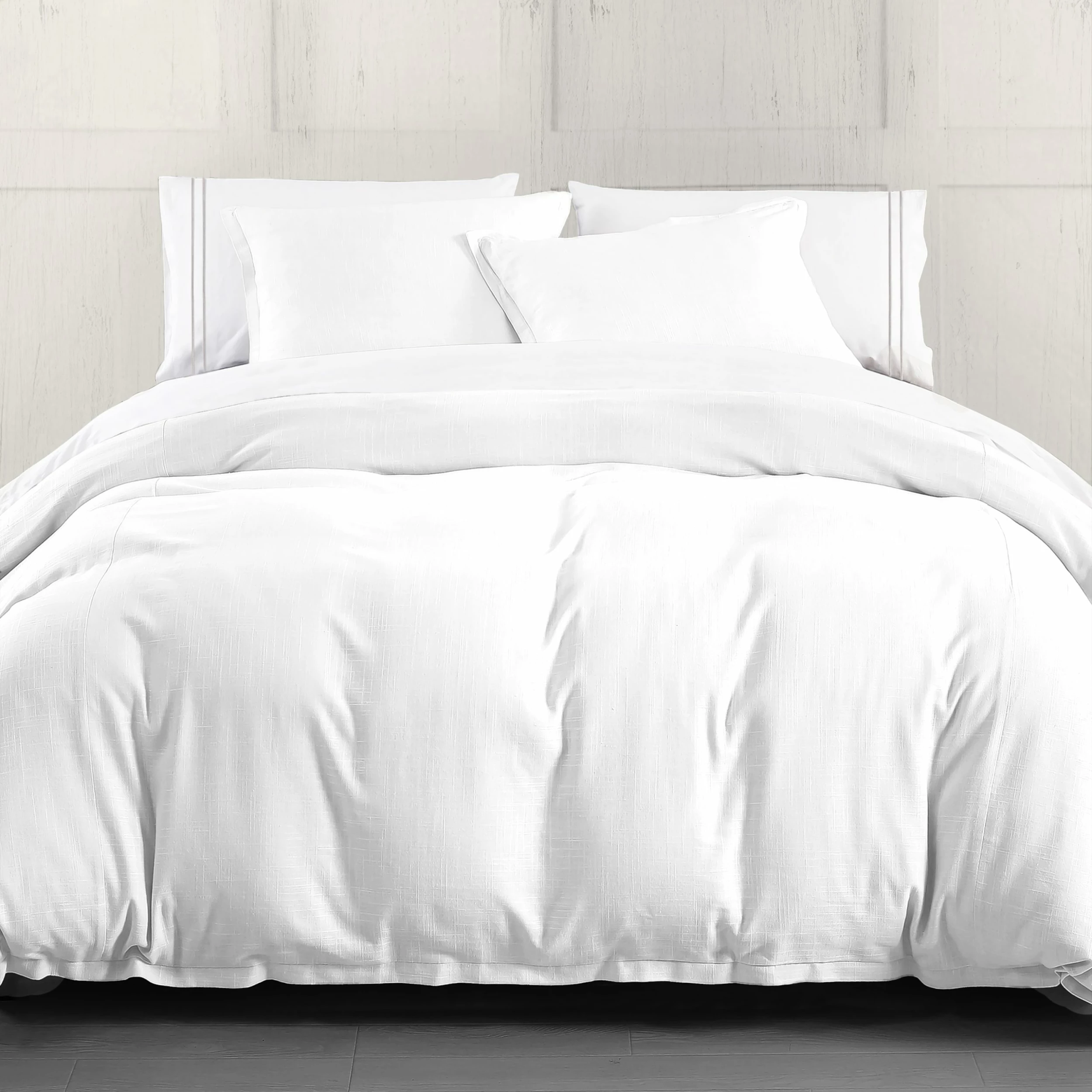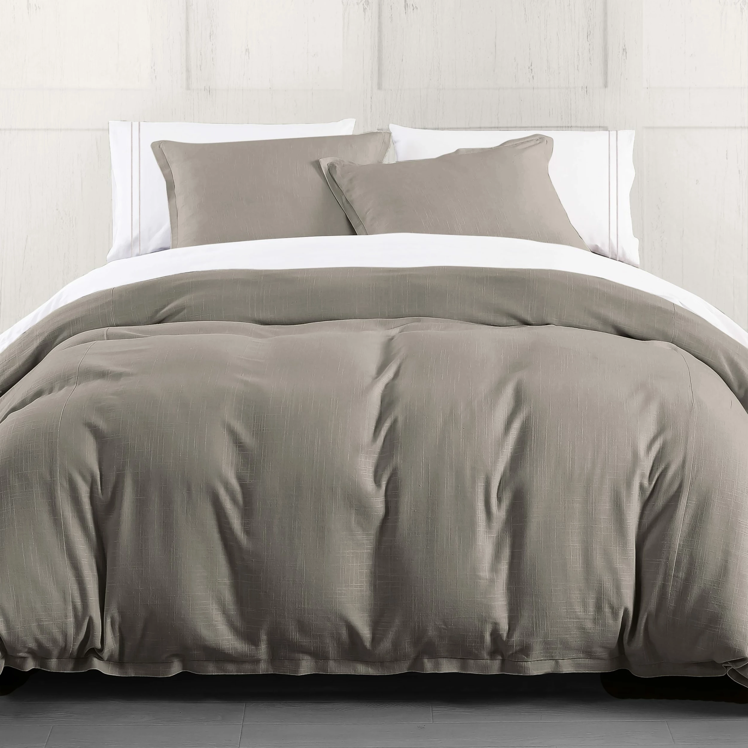Soft, airy, and simply sophisticated. Our Hera Washed Linen Flange Duvet Cover Set comes in an array of soft, muted colors, accented by a flange border for an elegant finish. With a versatile palette, this bedding set easily blends in with a variety of casual and contemporary styles. Our signature linen-blend is easy to care for and mimics the look and textural appeal of linenโwithout the creases. Layer with our Stonewashed Cotton Velvet Quilt for a casual yet luxurious look.ย