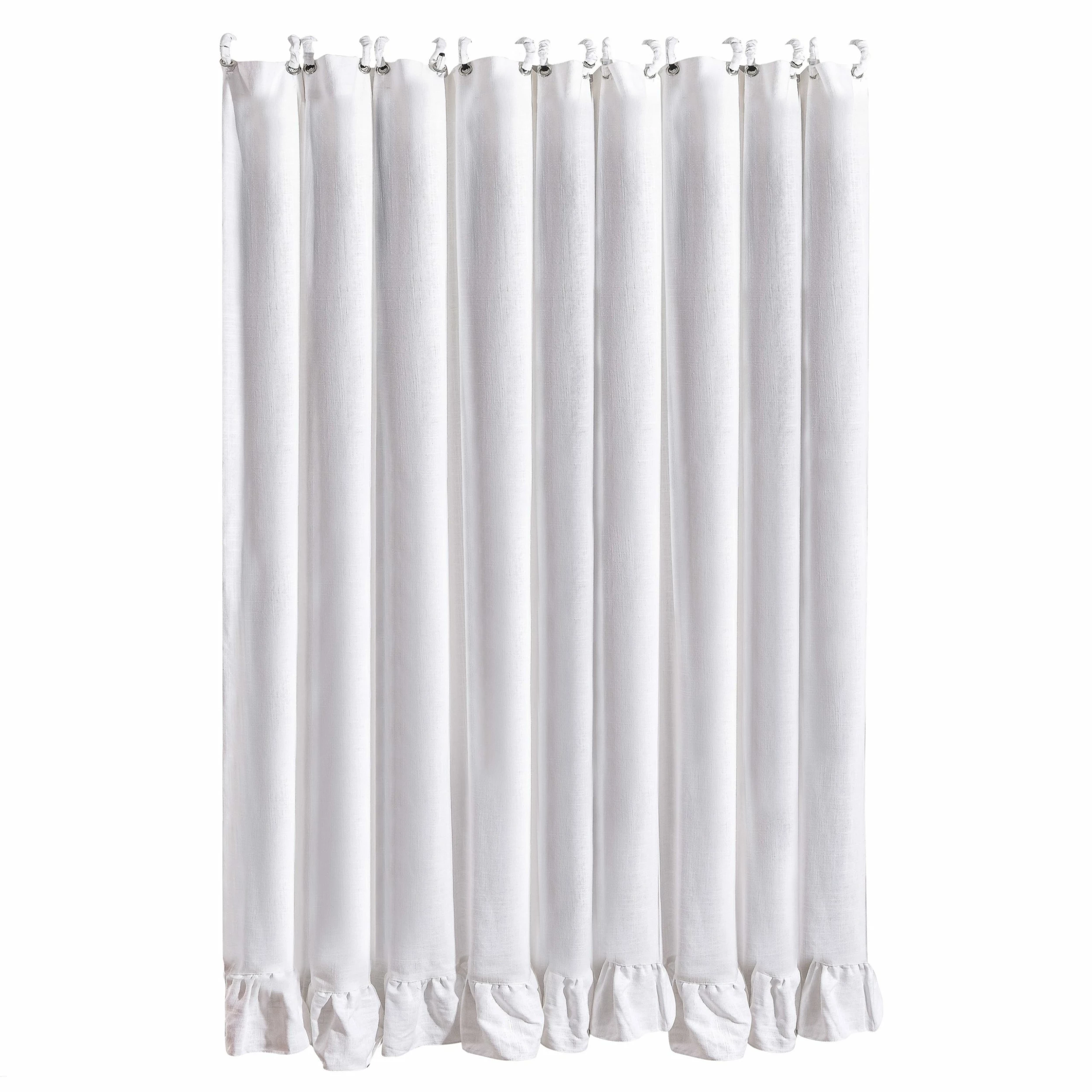 With a long, flowy drape and a delicate ruffled edge, our Lily Washed Linen Ruffled Shower Curtain imparts a graceful and elegant touch to your bathroom. In versatile neutral tones, our signature washed linen blend recalls the soft yet crisp textures of linen, while being wrinkle-resistant and easy to care for. Coordinate with other bathroom accessories in our Lily Collection to complete a romantic, shabby & chic, Western, or transitional bathroom look. ย ย