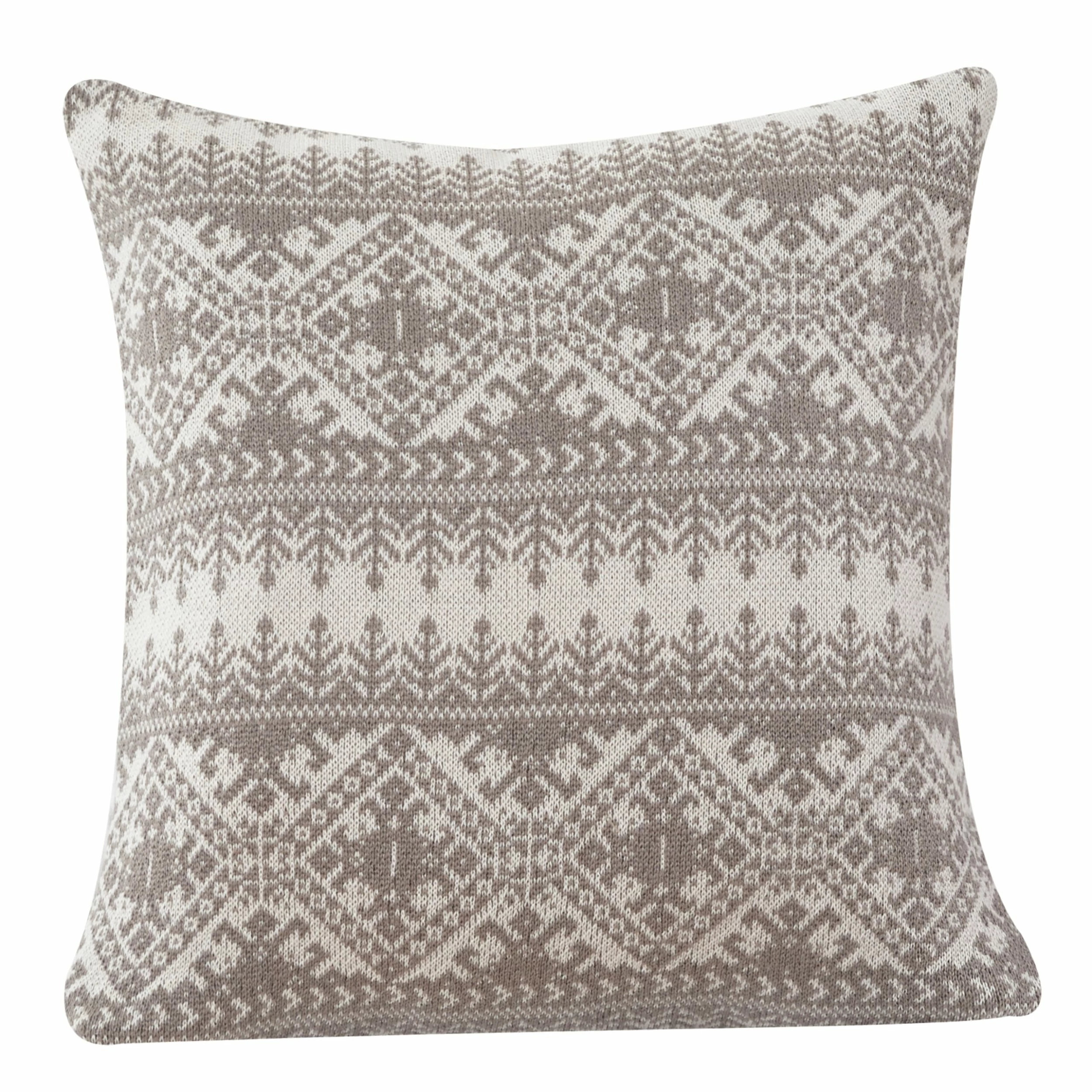 This beautiful classic knit pattern will perfectly accent your bed. In warm shades of cream and taupe, this euro sham complements many decor styles. The Lodge Fair Isle Knit Euro Sham measures 26″ x 26″. Hidden zipper closure. Made from 100% acrylic. Hand wash only, reshape and dry flat. Imported. Euro pillow not included.