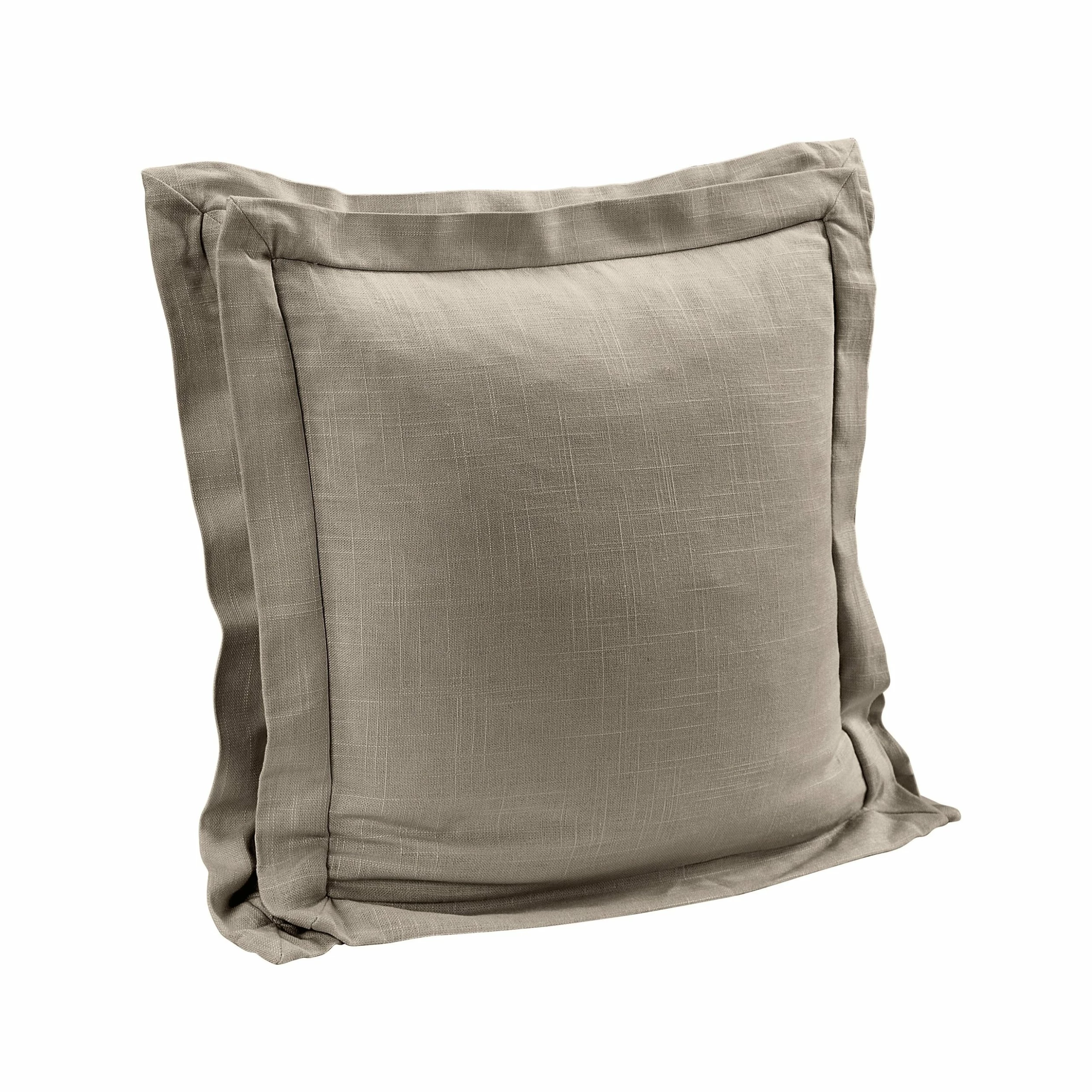Our Double Flanged Washed Linen Pillow is a simple yet elegant addition to any sophisticated bedroom ensemble, showcasing a large double-flange border for added dimension and depth. It’s made with our signature linen blend that resembles the feel and aesthetic of linen, but with extra softness and easier care. This pillow is available in wide range of versatile neutrals to complement a variety of styles and themes. Coordinate with other pieces from our Lily, Hera, and Luna Collections to complete a romantic chic and shabby or farmhouse-inspired look. ย