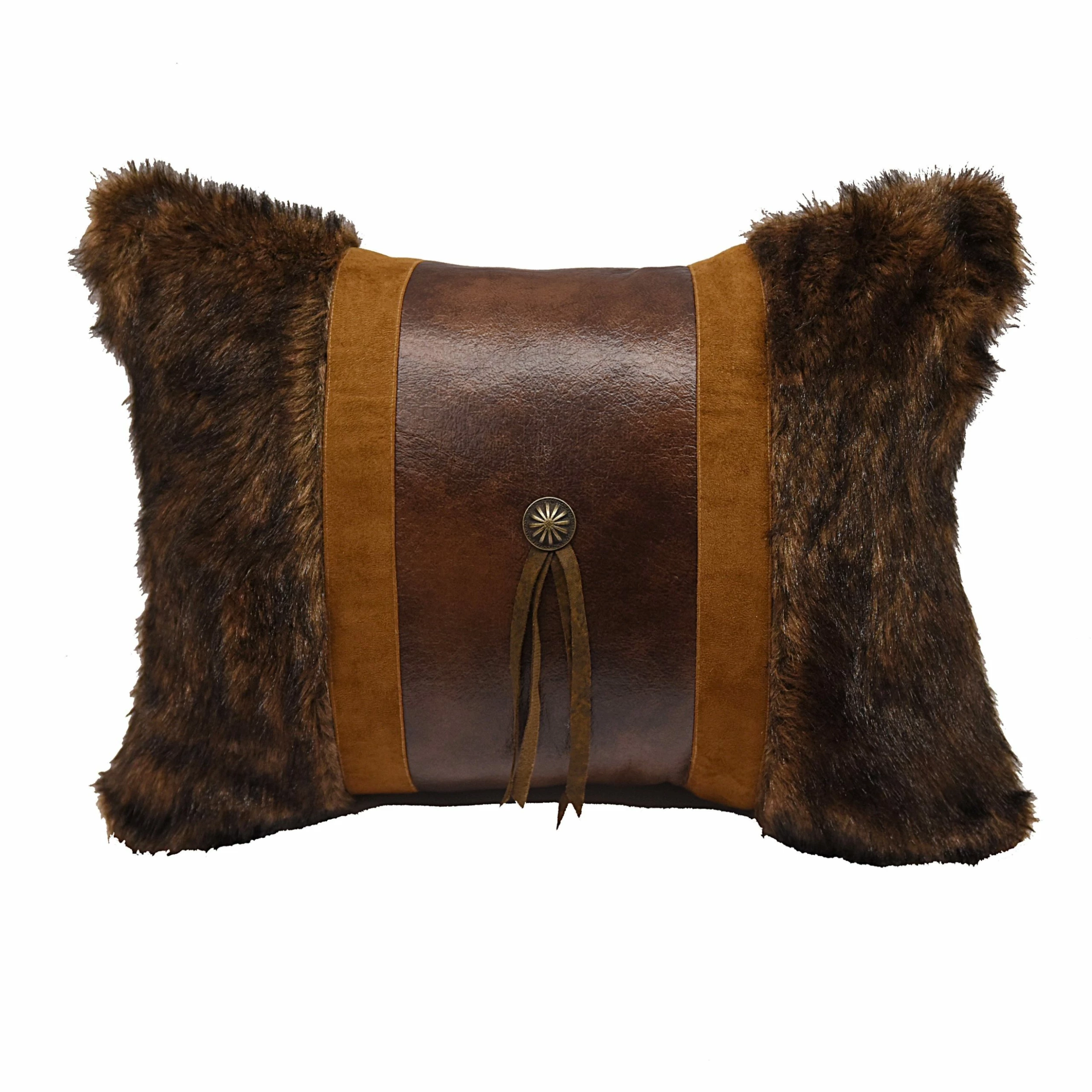 Create a lively atmosphere in your transitionally styled room with this attractive faux fur pillow from HiEnd Accent. The centered concho with fringe detailing provides a striking accent.