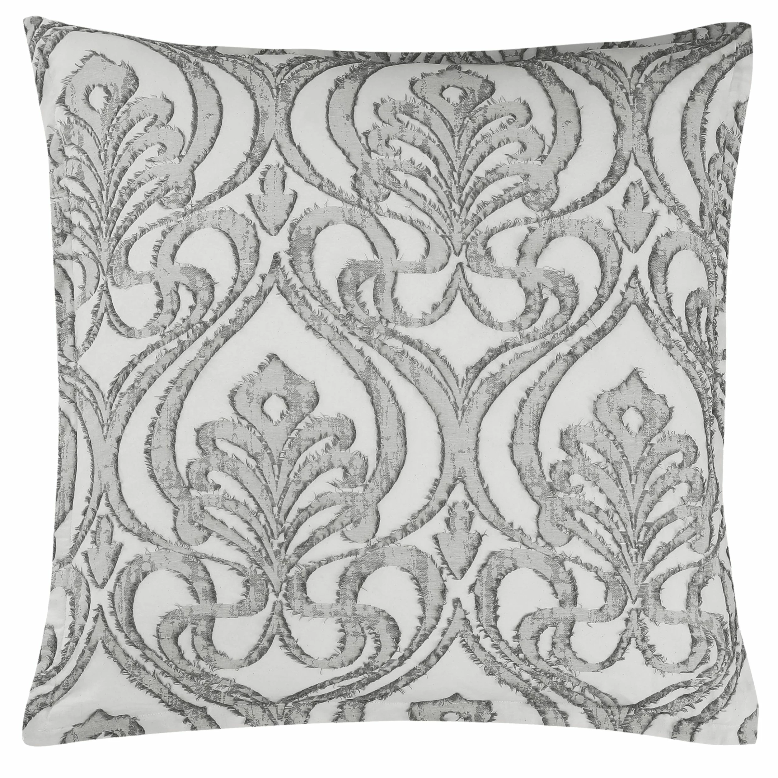 Update your traditional bedding with the Nicole collection. The oversize damask jacquard is done in the traditional brocade fashion. This woven texture adds a luxurious look and feel to your chic bedding ensemble. In rich gray tones, the Nicole Euro Sham elevates your bed. Layer with feminine throw pillows in complimentary tones for a modern vintage feel. Size: 27″x27″. 100% Cotton.