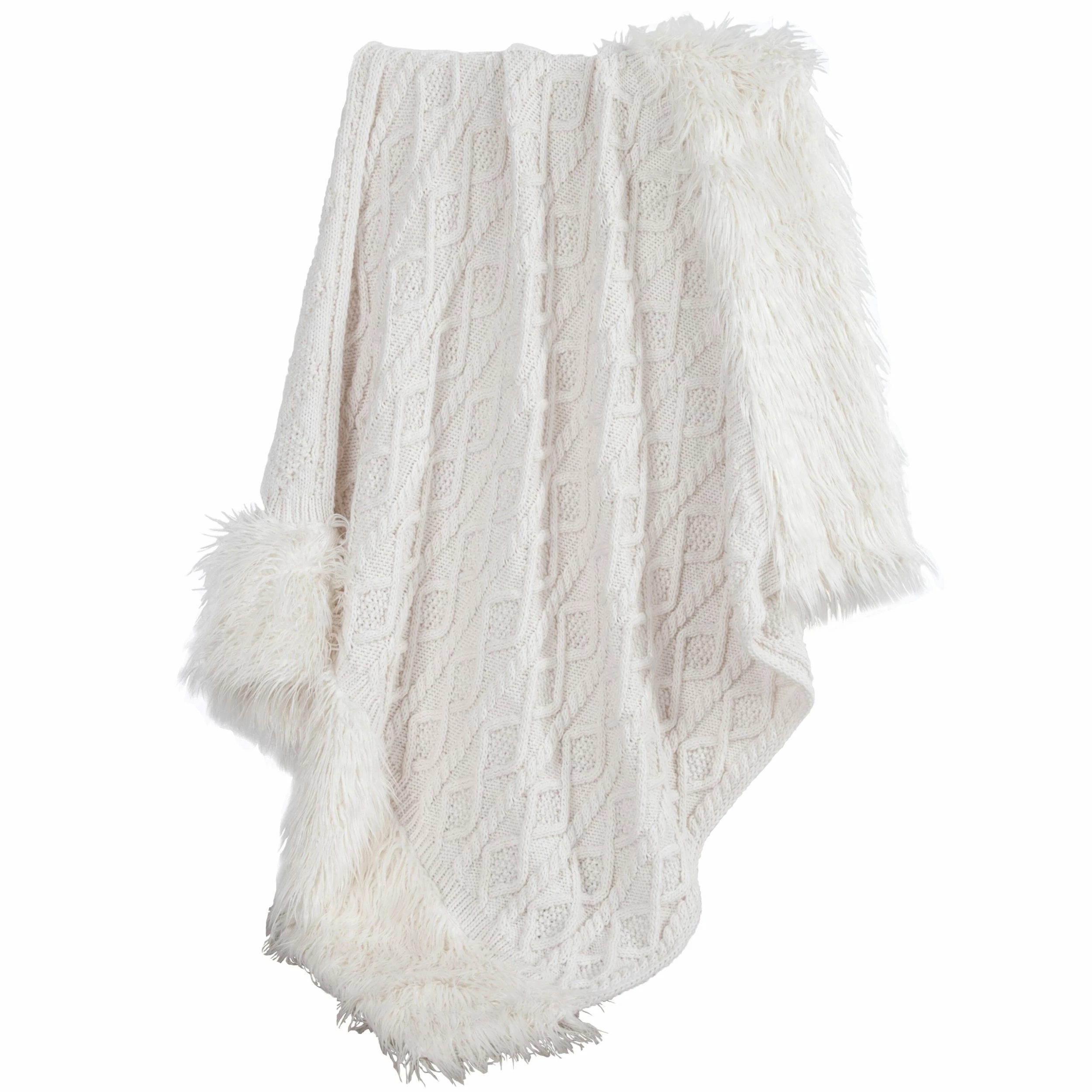 Wrap yourself in luxury with this gorgeous oversized Nordic Throw. This throw combines elements of a classic diamond pattern cable knit and a super soft faux Mongolian fur. Oversized construction makes this throw perfect to add to the foot of your bed or on the back of your sofa. Throw measures 50″x80″. Materials: 30% Wool/70% Acrylic. Hand wash cold, reshape and dry flat. Imported.