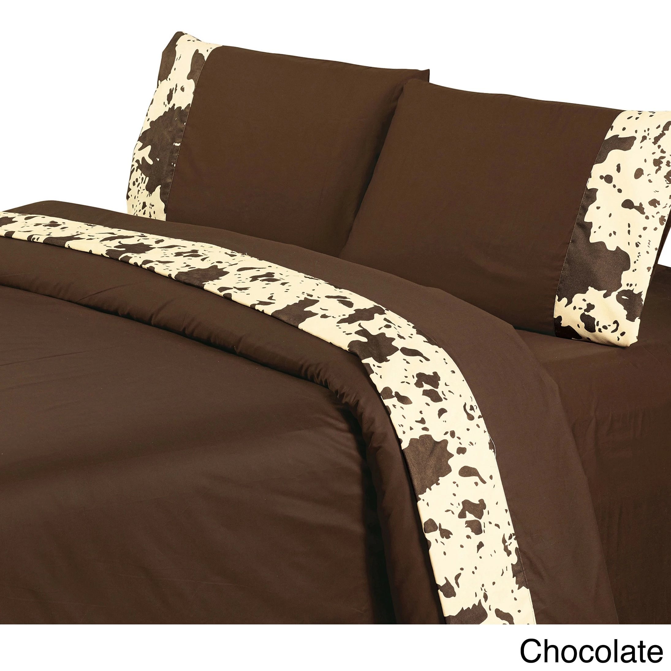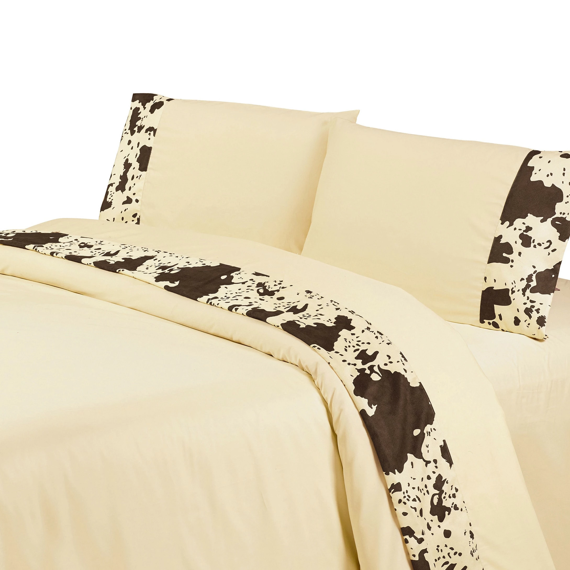 Go for a country or Wild West motif with this HiEnd Accents printed cowhide sheet set. A 350-thread count delivers a soft, comfortable texture, and the machine-washable 100-percent cotton construction allows for effortless fabric care. Two matching pillow cases coordinate with the fitted and flat sheet for a pulled-together look.