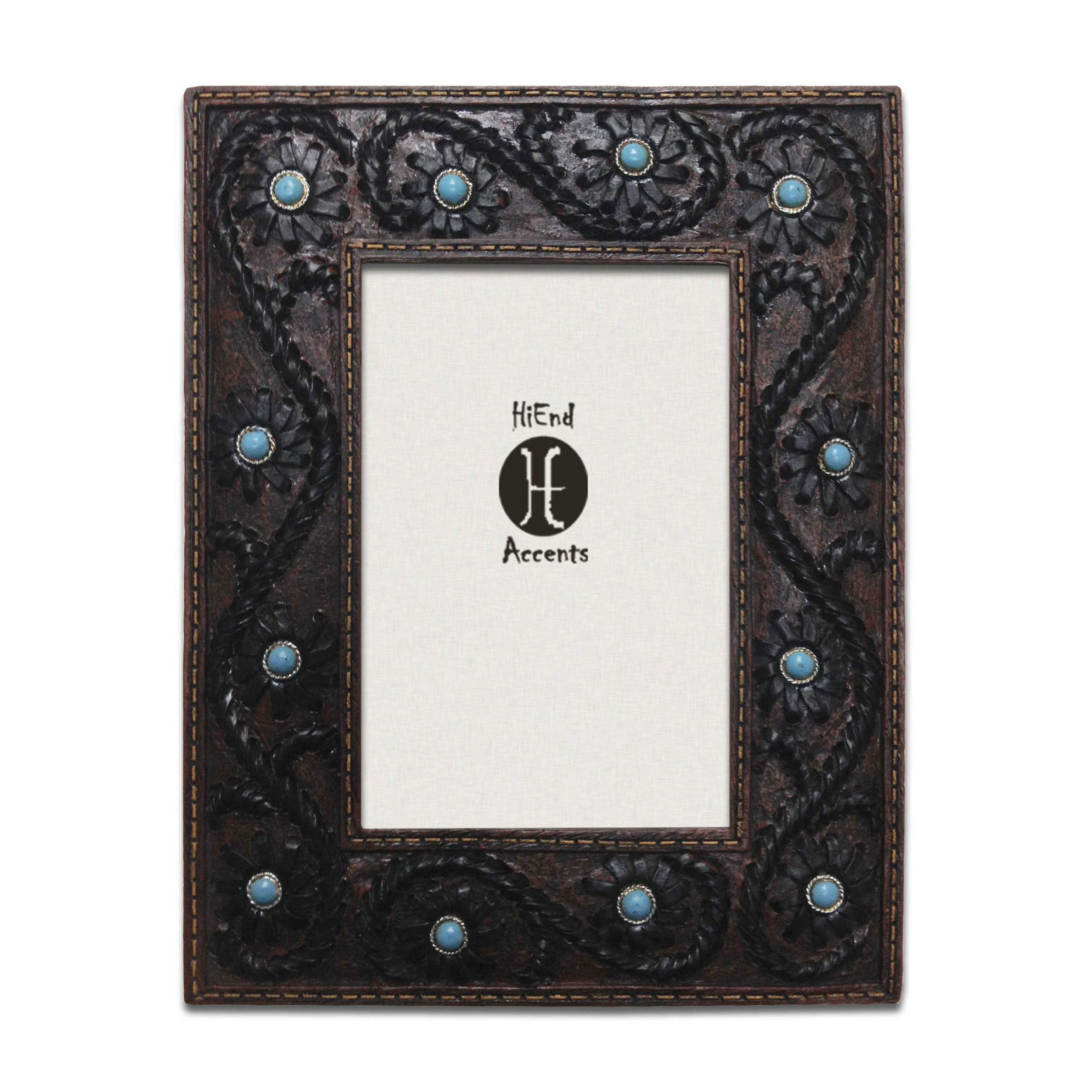 HiEnd Accents Scrolled Lacing W/ Turq Stones (Ea) 4X6