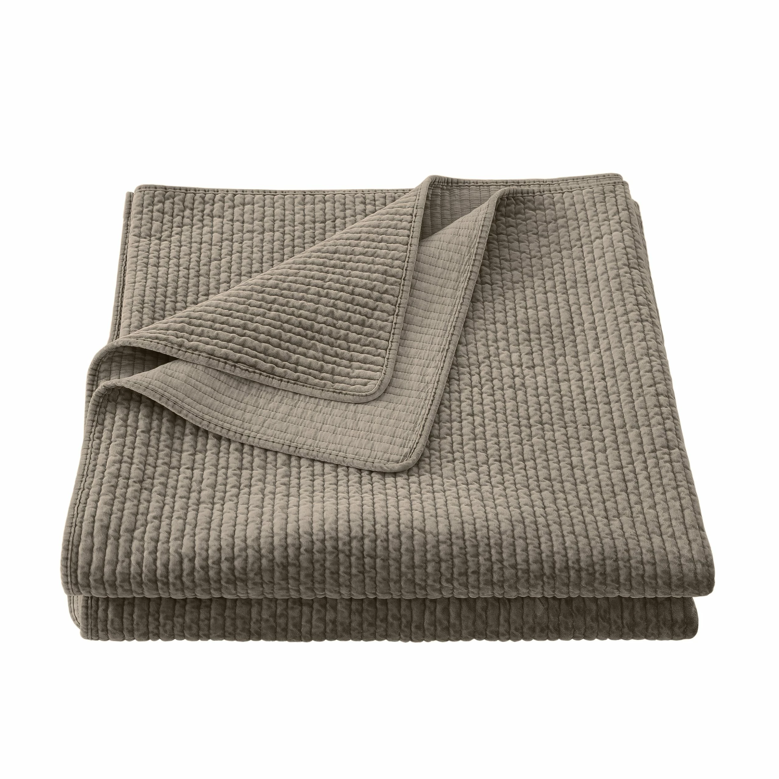 Irresistibly soft and cozy, this quilt brings a warm, lived-in charm to any room. Our stonewashed cotton velvet has a substantial hand and easy drape, accentuated by channel quilting for a simple yet modern look. Durable and easy to care for, this quilt acts as a lightweight standalone piece for warmer months but transforms into a versatile layering element during cooler months. Its availability in a wide range of neutrals and jewel tones means there’s a sumptuous quilt for your style, whatever that may be. ย